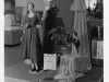 Print. Black and white photographic print of an interior display in the Fabric Department at The J.L. Hudson Company Department Store. A female mannequin is dressed in a lace dress, with a floral detail at the waist. Differing shades of lace are draped adjacent to and behind the mannequin. Signage affixed to the top rear of the display reads, "Chantilly Type Laces for early Fall!" Also, signage in the central foreground reads, "Shades of Brown for Early Fall, 35 inches wide, $4.50 yard." The photographic sequence number, company name, and photographer's name are printed on the bottom of the recto, "25396; The J.L. Hudson Company; Photography by Davis B. Hillmer."