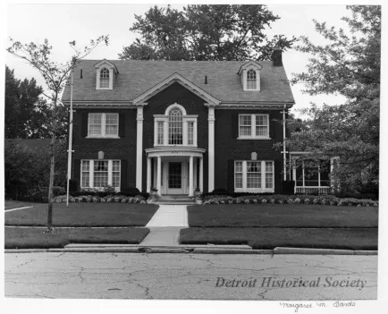 Black and white oversized photographic print depicting a house on the east side of Iroquois Street, between Kercheval Street and E Vernor Highway, in Indian Village. Dated September 20, 1977.