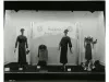 Print. Black and white photographic print of a window display advertising the latest women's fashions available at The J.L. Hudson Company Department Store. Two female mannequins model the latest day fashions which include above-the-ankle dresses, adorned with belts, and appliqued embellishments. The right mannequin is also wearing a hat, gloves and shoes, while the mannequin on the left holds gloves and a handbag in her hand. Two other styles of dresses are displayed adjacent to the mannequins. Ladies gloves are displayed in the right corner foreground. Signage affixed to the rear of the display reads, "53, Hudson's Anniversary, 53." Also, signage in the central foreground reads, "Our 53rd Anniversary, We Suggest Brown or Green, For Sports Wear and Anniversary Values for Thrift, Dress Shop, 6th Floor, Woodward." The photographic sequence number is printed on the recto, "15934."