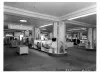 Print. Black and white photographic print of an interior view of the Women's Beach and Play Clothes Shop inside The J.L. Hudson Company Department Store. Mannequins featuring the latest daytime and beach fashions are featured on elevated platforms adjacent to columns which are adorned with under the sea motifs which include fish. Clothing racks of items available for purchase are also visible throughout the department and include blouses, skirts, jackets, dresses, and bathing suits. The date, photographic sequence number, and photographer's name are printed on the bottom of the recto, "5-9-41; 18434-2x; Davis B. Hillmer."