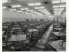 Print. Black and white photographic print of an interior view of the Employee Cafeteria inside the Ford Motor Company's River Rouge Plant. Each of the tables is composed of wood, and seat four; featured atop the tables are a napkin dispenser, sugar dispenser, and salt and pepper shakers. Vinyl flooring is visible beneath the tables, and the food service area is visible in the background. The photographic sequence number, and the photographer's name are printed on the bottom of the recto, "18527-2x; Davis B. Hillmer." Also, hand-written on the verso, "Cafeteria, Ford Plant."
