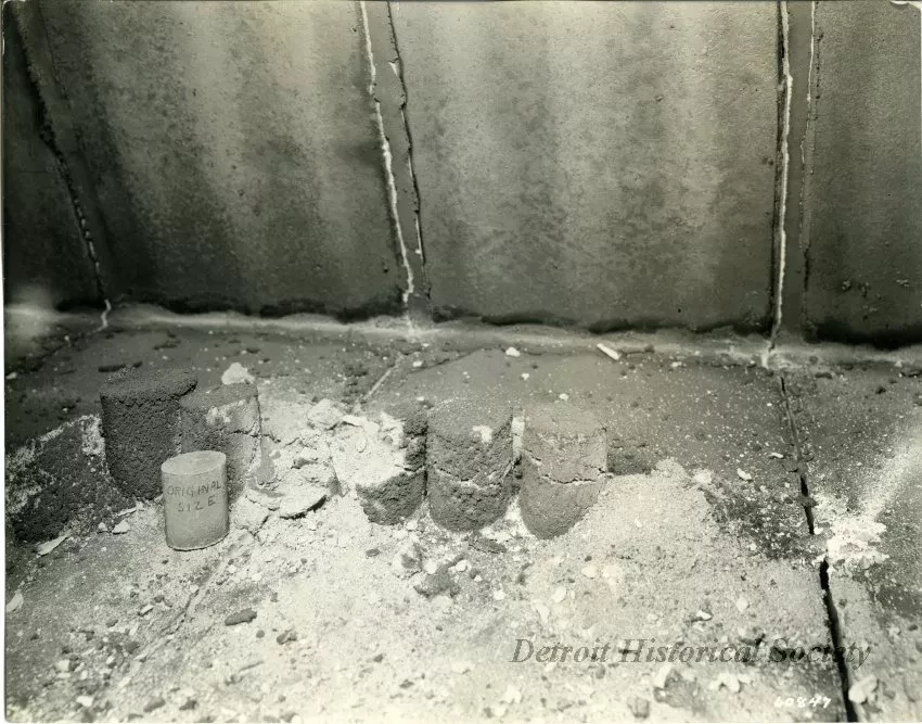 Caption on verso reads: 7. Showing how silicon carbide swells, oxidizes, and disintegrates at a low temperature when exposed for a long time to oxidizing conditions, due to the formation of cristobalite. Note that the interiors of the cylinders are white because of the cristobalite developed.