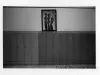 Black and white photographic print mounted on board depicting a row of lockers in a hallway at Davison Elementary School. A framed image of The Supremes hangs over the lockers.