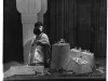 Print. Black and white photograph of the window display at Crowley's Department Store. A single female mannequin appears dressed as Cleopatra; neighboring the mannequin are various types of Revlon cosmetics. Signage in the foreground reads, "The Cleopatra Look, as only Revlon does it, Crowleys - Cosmetics Street Floor." Also, the date as been hand-written on the verso, "1963."