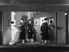 Print. Black and white photograph of the window display at Himelhoch's Department Store. Three female mannequins are expertly dressed in their finest suits and outer-wear while observing prints of Rembrandt. Signage to the left of the mannequins reads, "Rembrandt Brown, inspired by the great Dutch master's painting in the Masterpieces from the Berlin Museums now being shown at the Detroit Institute of Arts; Coat and Suit Salon, 2nd Floor." The date is hand-written on the verso, "Sept. 10, 1948."