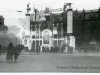 Black and white photo of the World War I "War Exposition" arch at Campus Martius. The Detroit Opera House building is visible in the background. Woodward Avenue is located just to the left of the arch.