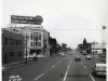 Black and white photographic print depicting a Walker & Co. billboard displaying an advertisement for the Shell Oil Co. that reads, "Stops Spark Plug 'Miss', Super Shell with TCP". In view is traffic on Grand River Avenue, facing northwest at 12th Street. Businesses include Troy Laundry & Cleaners, Abbot Auto Electric, Nazarene Church, Magnet Radiator Works, and a white box hamburger stand.