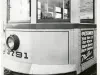 Large black and white photo of the front of a Woodward Avenue streetcar, numbered 3791, taken in a yard in Highland Park. A Miller jewelry advertisement is posted on the right rear side of the car, with the text, "The customers you see in our store have been here before. Miller, Square Deal Jeweler." The lettering atop the Ford Highland Park plant is reflected in the front window of the car.
