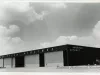 Black and white photographic print depicting an American Airlines hangar at Detroit Metro Airport. To the left are two parked cars.