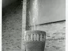 Black and white photographic print depicting the Frank G. McInnis Memorial Fountain in front of the Penguinarium at the Detroit Zoo.