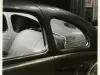 Black and white photographic print depicting a detail of the drivers-side C pillar of the Briggs Dream Car, with the bench seat visible through the window.