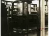 Black and white photographic print depicting a vestibule in a Detroit United Railway streetcar. Arrows point to elements that are maple, soft steel, and rod.