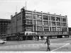 Black and white photographic print mounted on board depicting the Old's Sam's Store on the east corner of Randolph and Monroe Streets. Several pedestrians visible. Signs read: "Cut Rate Houseware", "Cut Rate Domestics", "Bargain Basement", "Cut Rate Shoes", and "More For Your Money Every Day at Sam's". Brick buildings visible in the background.