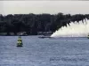Color slide, taken during the 1981 Stroh's Silver Cup Race on the Detroit River. In the picture PAY 'N PAK, driven by John Walters, is coming around the upper turn. The Belle Isle shoreline can be seen in the background. The boat finished seventh in the race.