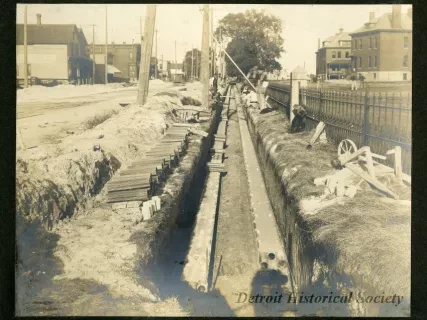 Tracing from a Map of Springwells by Lieuts. Macomb & Warner, T.E. [Topographical Engineers], 1841, with the Addition of Outlines of Fort Wayne and Public Grounds, Sept., 1865.