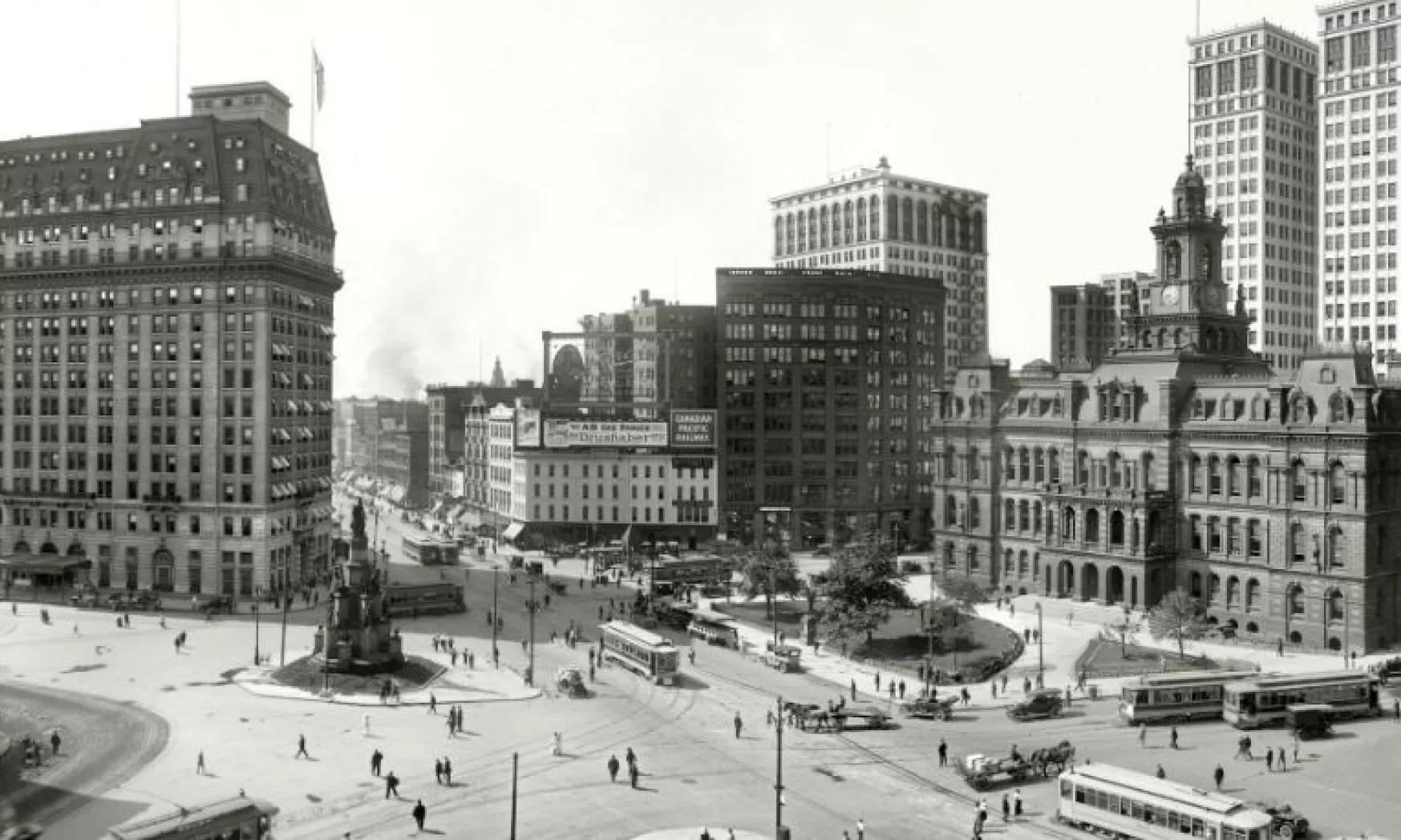 The Book Tower is a 475-foot tall, thirty-eight story skyscraper located on Washington Boulevard in downtown Detroit. Brothers J. Burgess Jr., Herbert, and Frank Book, Detroit-born entrepreneurs and real estate developers, foresaw a demand for additional office space in booming downtown Detroit. They developed a plan to redesign Washington Boulevard, and hired local architect Louis Kamper to design their new buildings. The Book Tower was built on the corner of Washington Boulevard and Grand River Avenue, adjacent to the existing Book Building, another Kamper building built in 1917. Construction began in 1923 and ended in 1926. It was the tallest building in Detroit at the time of its completion but was overtaken just two years later by the Penobscot Building. The Book brothers had planned to build an additional eighty-one story tower to regain the title of the tallest building in Detroit, however only two stories were completed, and the remaining plans were scrapped due to the Great Depression.